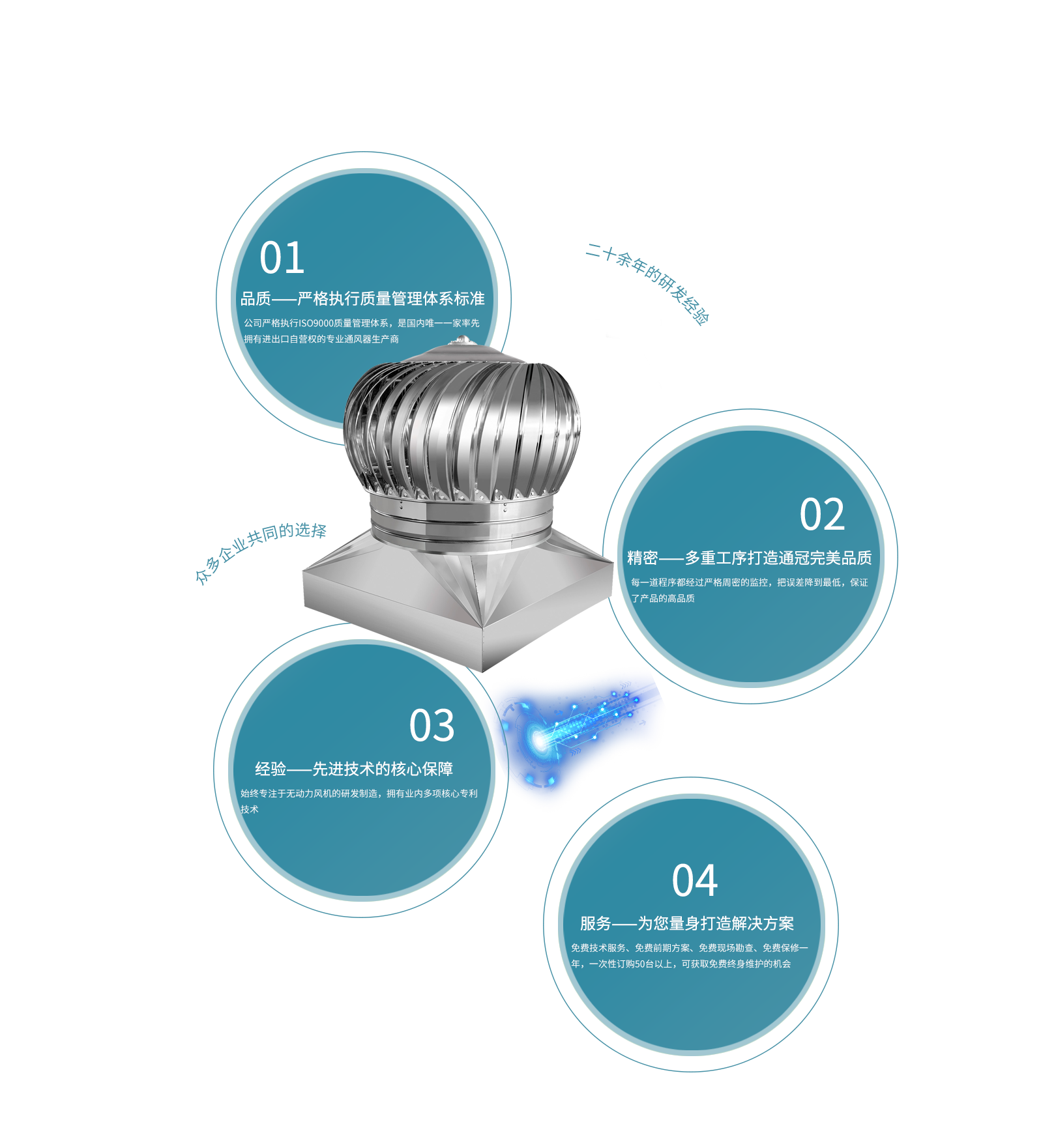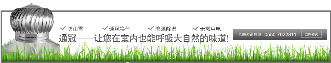 天長市通冠無動(dòng)力風(fēng)機(jī)有限公司,是集研發(fā)、生產(chǎn)、銷售于一體的,專業(yè)無動(dòng)力風(fēng)機(jī)生產(chǎn)廠家。公司坐落于205國道南京與揚(yáng)州之間,位于省級高新經(jīng)濟(jì)技術(shù)工業(yè)園,交通便利?!巴ü凇庇兄恢Ъ夹g(shù)精湛、服務(wù)非凡的隊(duì)伍。所有一線技術(shù)工人技術(shù)熟練、質(zhì)量意識(shí)強(qiáng)。公司嚴(yán)格執(zhí)行ISO9000質(zhì)量管理體系,一貫貫徹“以質(zhì)量為生命”、“以信譽(yù)為根本”、“以服務(wù)為基礎(chǔ)”的理念···[查看詳細(xì)]